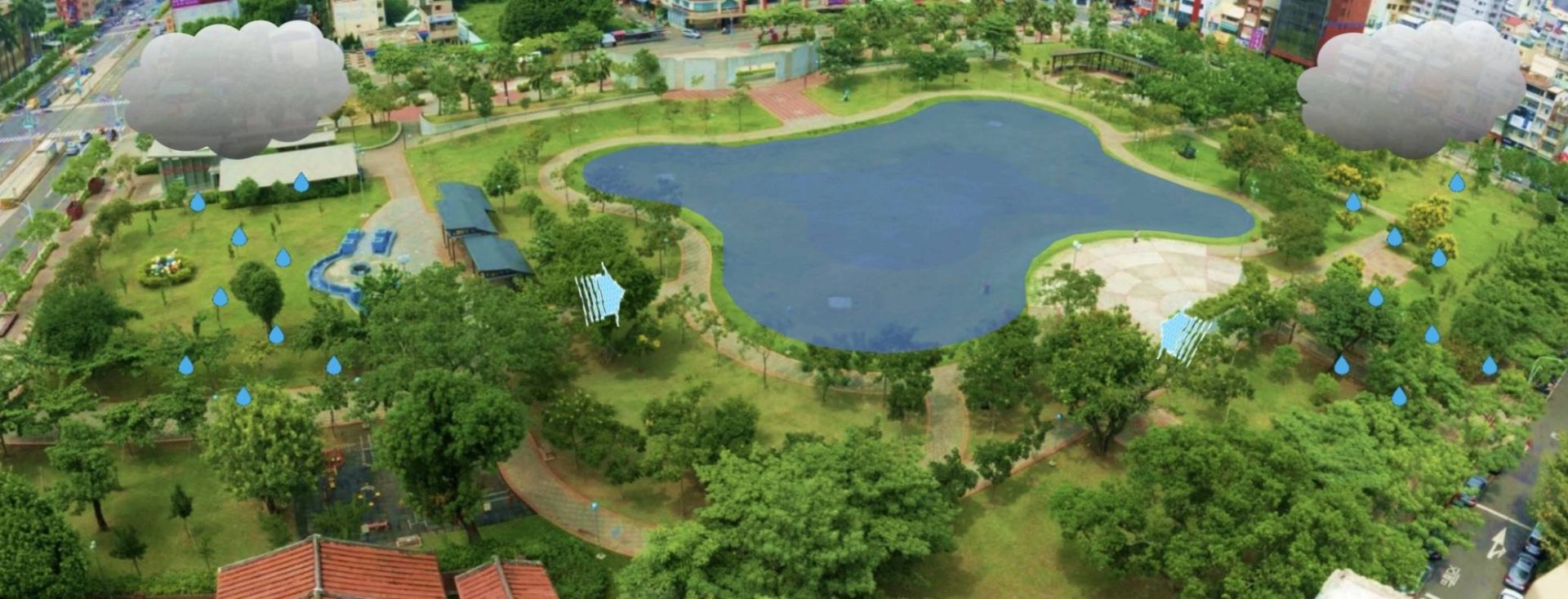 水利局說明,永康區永平街一帶受限於路幅寬度,既有雨水下水道難以大規模擴建,為突破工程瓶頸,市府以治水新思維「逕流分擔」治理改善,規劃將永康「探索教育公園」(公5)及鄰近綠地改造為兼具防洪與休憩功能的滯洪場域,預計將可提供約1.09萬噸滯洪空間,大幅提升地區防洪韌性。另外針對安南區安中路一段周邊,水利局將利用頂好公園及大愛公園腹地設置地下滯洪池,預計可增加9,000噸滯洪空間,將有效分擔安中路一段鄰近集水區逕流量,降低周邊淹水潛勢。