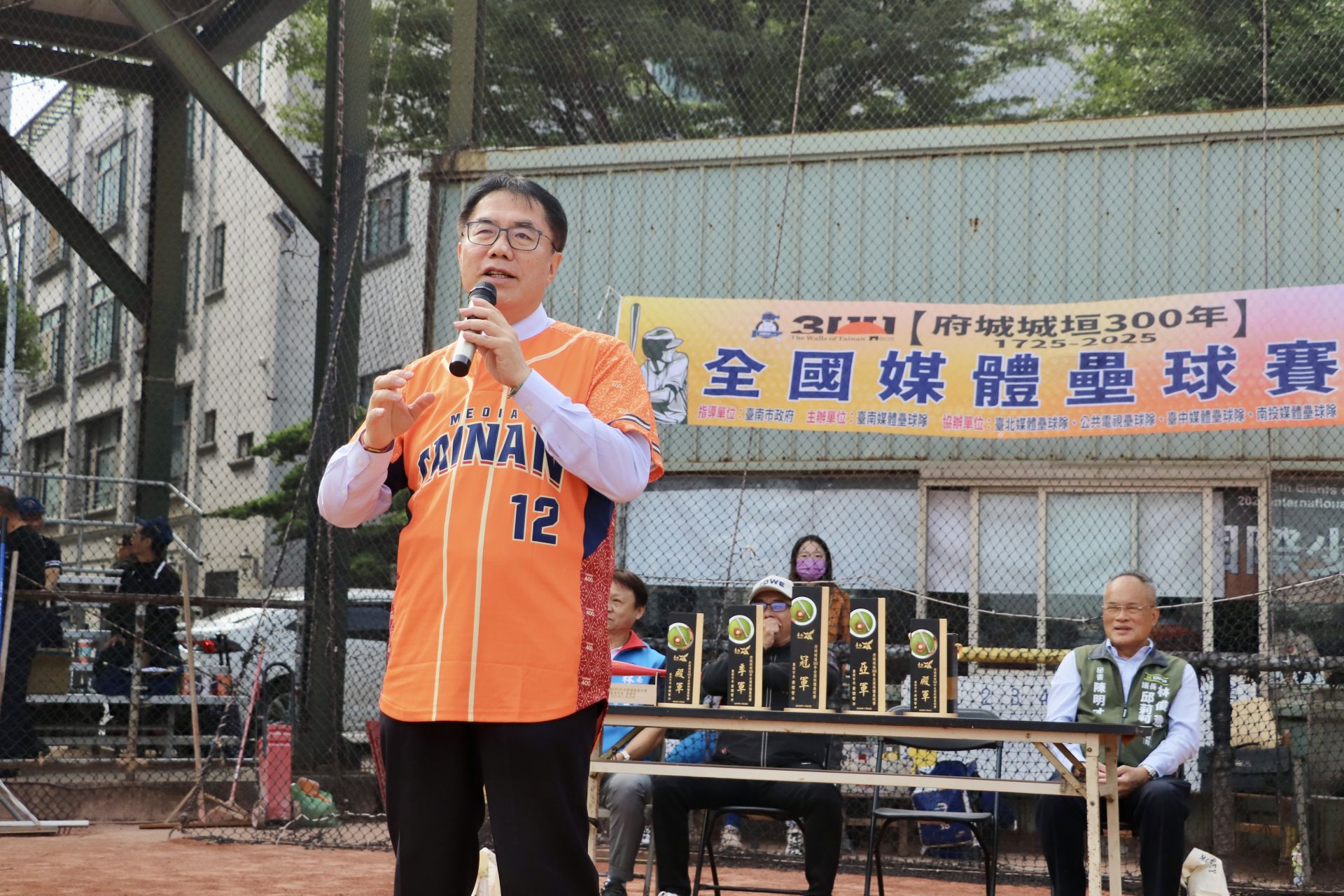 為慶祝台南府城300年,並促進全國媒體界彼此交流、凝聚向心力,由台南市電子媒體協會主辦的「府城城垣300年 全國媒體壘球賽」於今(29)日上午在台南北區小北B、C球場登場。賽事於當日上午10時正式展開,市長黃偉哲出席開球,給予來自全國各地媒體代表鼓舞,他也感謝所有參與者熱情投入,並預祝賽事圓滿成功。