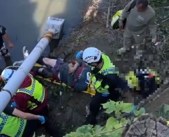 苗栗頭份夫妻被撞落水溝! 轎車失控肇事另撞斷燈桿