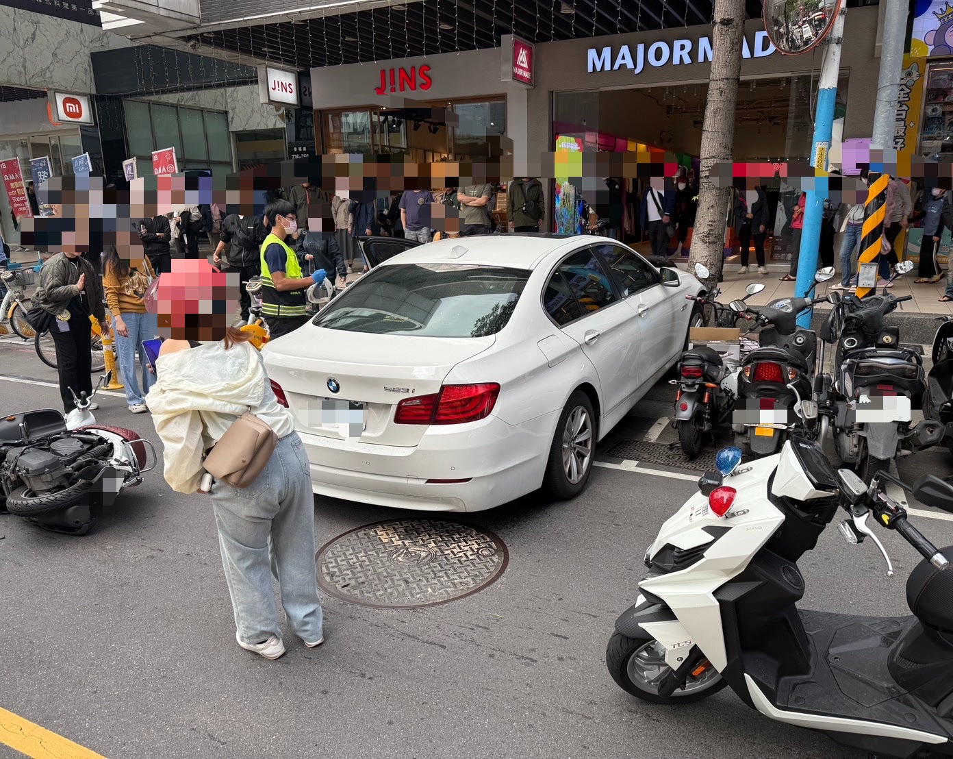 新莊幸福路發生BMW轎車暴衝撞擊數車並造成民眾受傷,大批警消人員到場處理。翻攝畫面