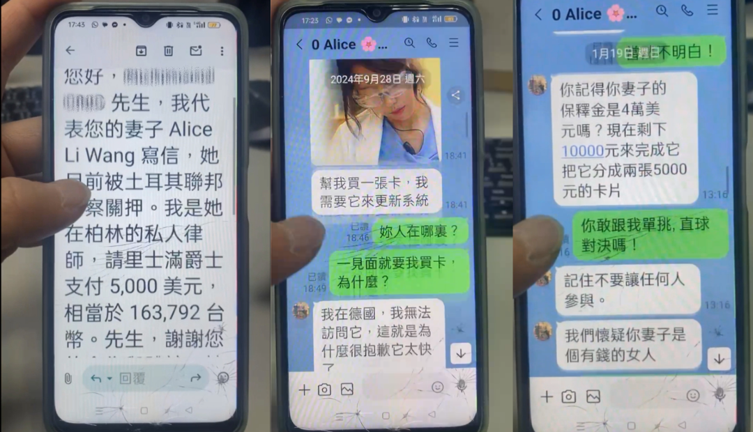 警方調查,老翁自去(2024)年9月透過網路認識德國醫護人員「艾莉絲」,2人每天還會用LINE甜蜜對話,感情升溫後甚至以夫妻相稱。去年12月初,艾莉絲聲稱已搭乘土耳其航空返台,老翁興奮趕往接機,卻遲遲不見人影,對方隨後傳來求救訊息,表示自己在中途遭不明人士囚禁,還附上「犯罪集團」的勒索要求,指名要老翁支付APPLE STORE點數卡作為贖金。深信不疑的老翁陸續匯款7萬餘元,直到掏空積蓄無力支付才找上警方求助。
