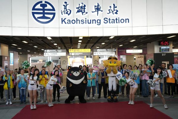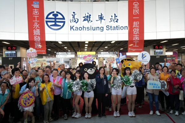 114年「閃出志願服務行動力」 高雄熊、TAKAO及啦啦隊現身高雄火車站邀您逗陣做志工